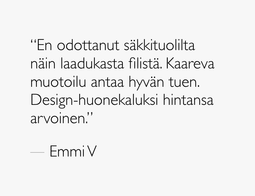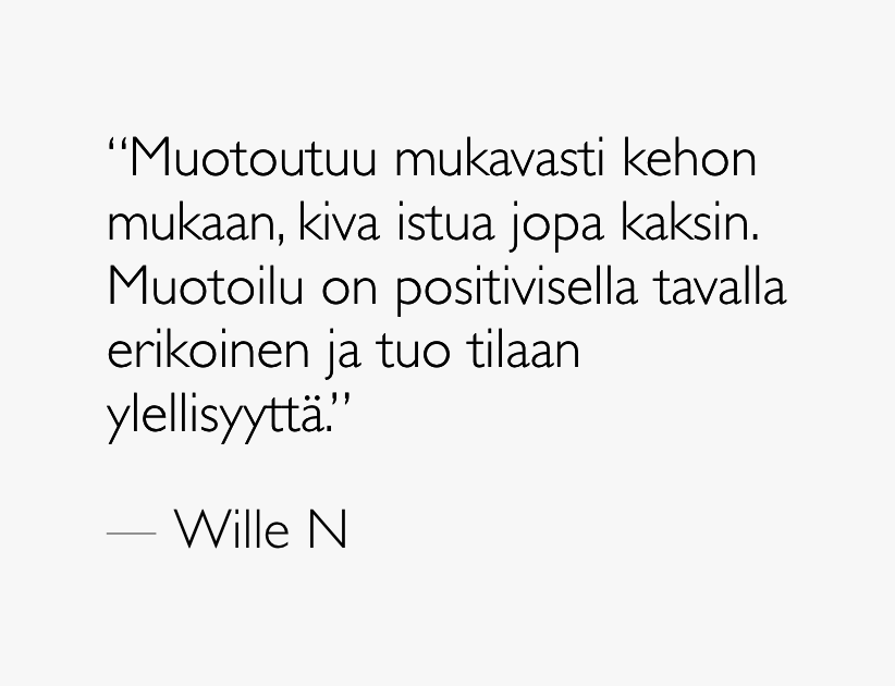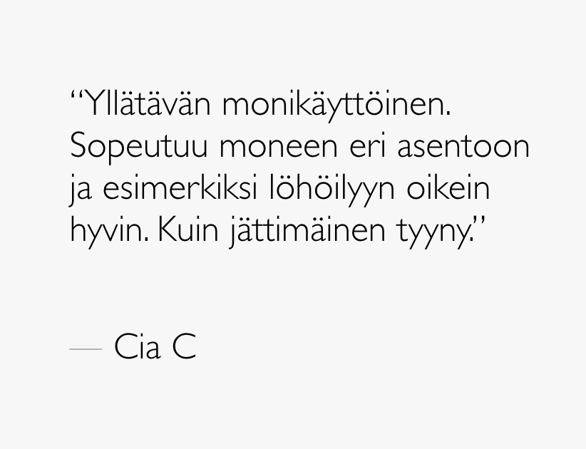 Kvarterin ensimmäisessä tuotteessa, Imperial Donut säkkituolissa, yhdistyy urauurtava muotokieli säkkituolin mukavuuteen. Huippuunsa hiotun DuraMix täytteemme ansiosta tuoli mukautuu istujan kehon ympärille, mutta säilyttää silti hienostuneen muotonsa vuosia.